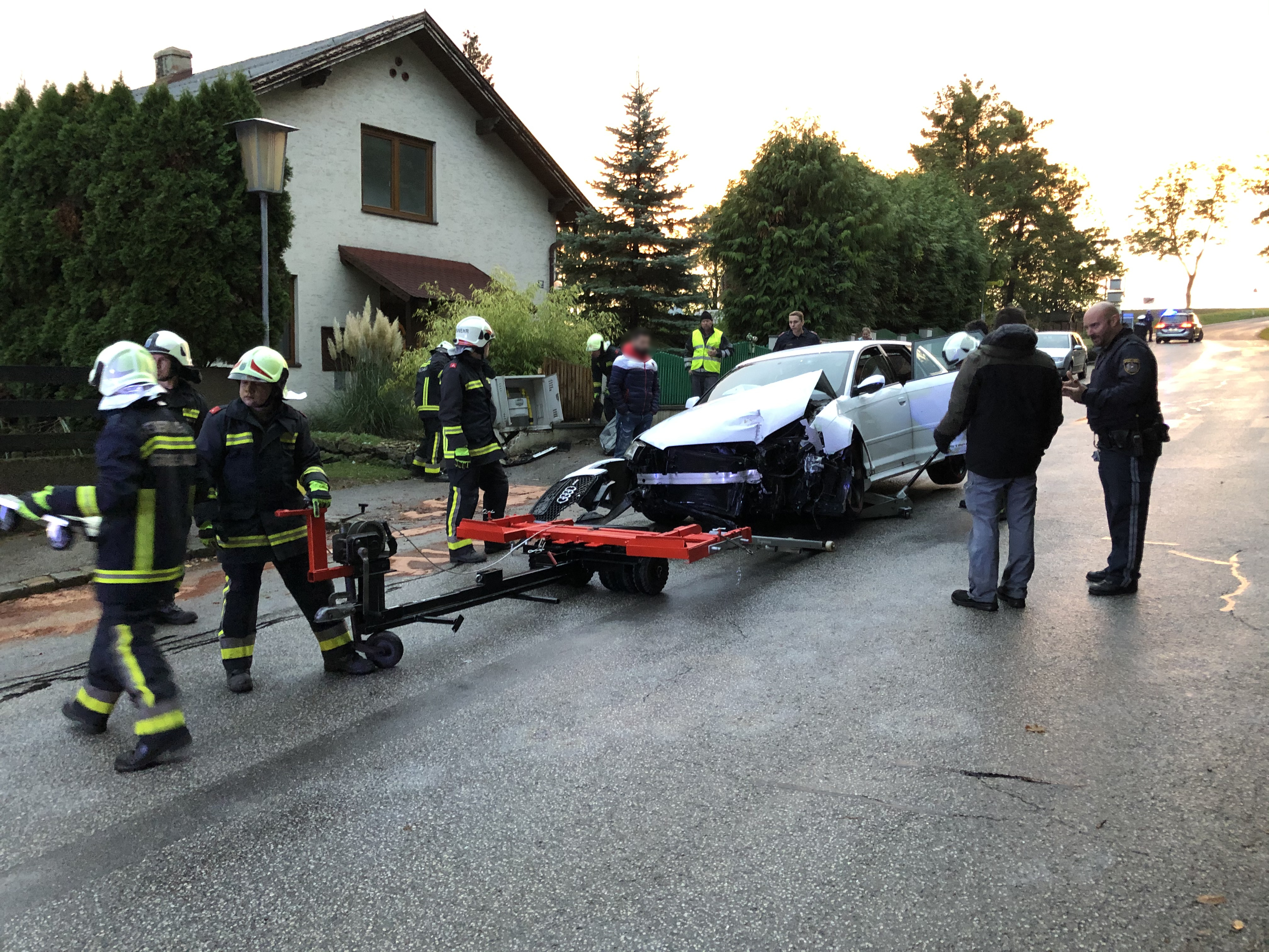 Da keine Personen bei dem Unfall verletzt wurden, war das Hauptaugenmerk auf den Gasverteiler und in weiterer Folge die Bergung des PKWs gerichtet.