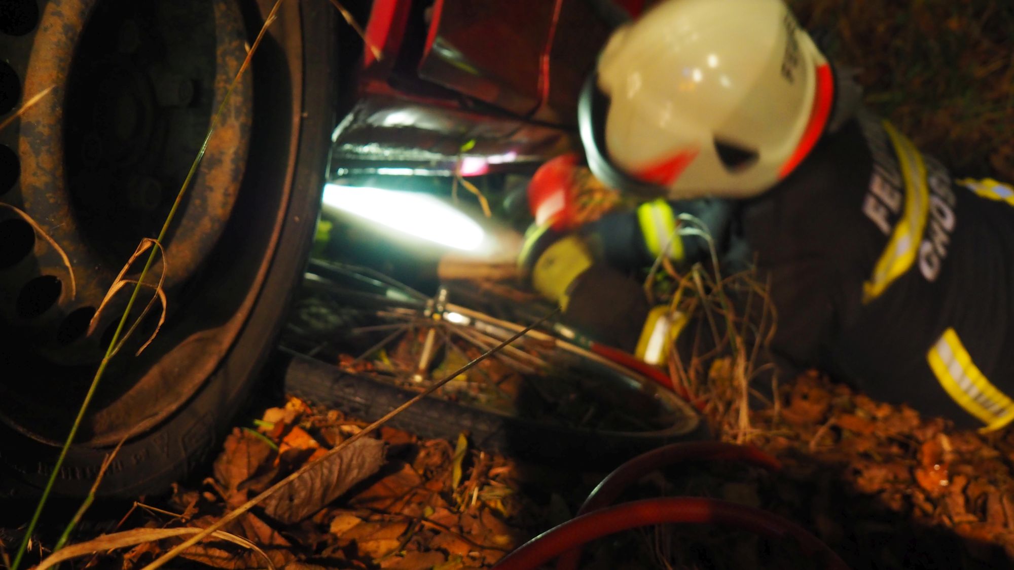 Die Person wurde mittels Spineboard und in weiterer Folge über den Kofferraum geborgen und zur weiteren Behandlung ebenfalls dem RK übergeben.