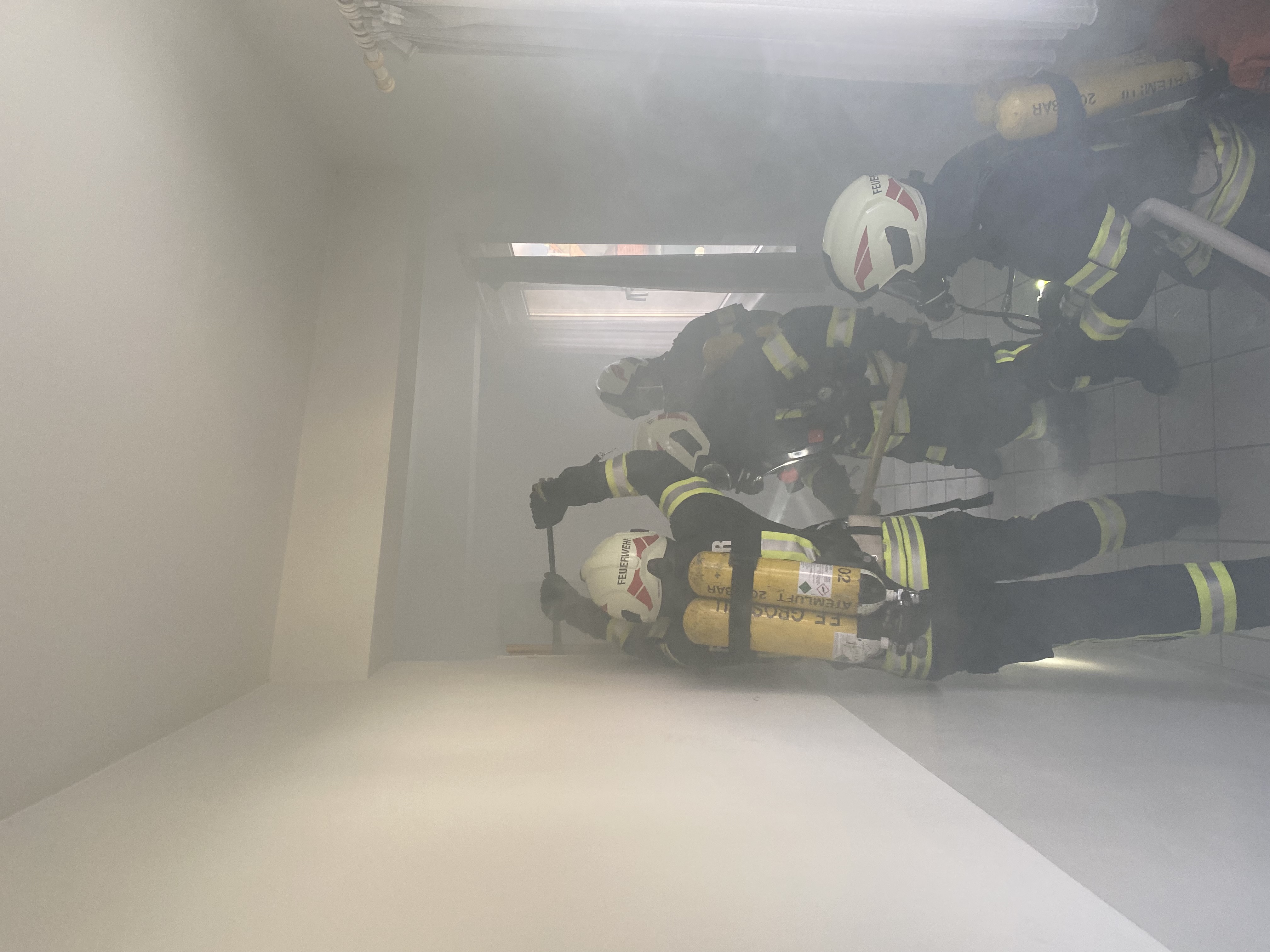 Ein genaues Augenmerkt wurde auf das Schlauchmanagement und die Kommunikation im Trupp gelegt, sowie das Durchsuchen eines verrauchten Raumes nach Personen.