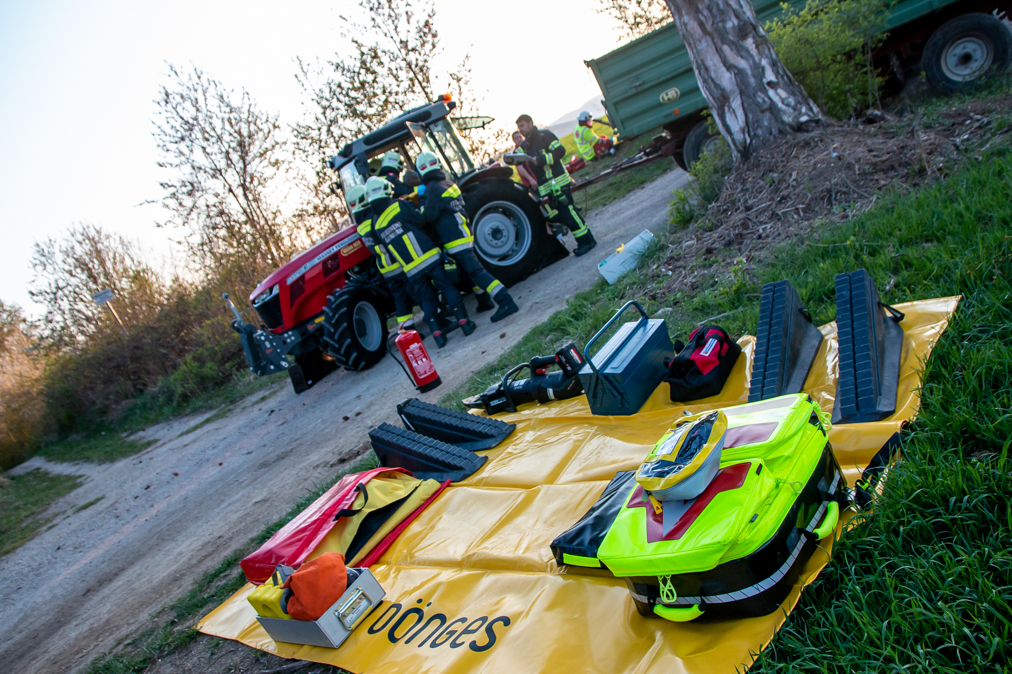 Die Kameraden der FF Gainfarn bekamen die Aufgabe den Traktorfahrer aus seiner missliche Lage zu befreien, da dieser einen schweren Schock erlitt.